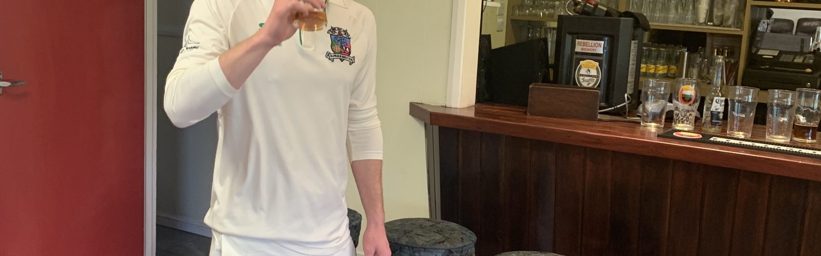 Now, Ed has so far been steadfast in his refusal to give into his (more than evident) middle age and stop bowling “seam”, however Councillor Frecknall told him that he could only bowl if he bowled his left arm spin, and for whatever reason, Gregory agreed. The result of this has your writer giddy with excitement as he re-lives Ed’s 4 wickets in 9 balls. Caught, bowled, stumped, bowled. Two hat-trick opportunities went by in two overs… much to Shinner’s delight.