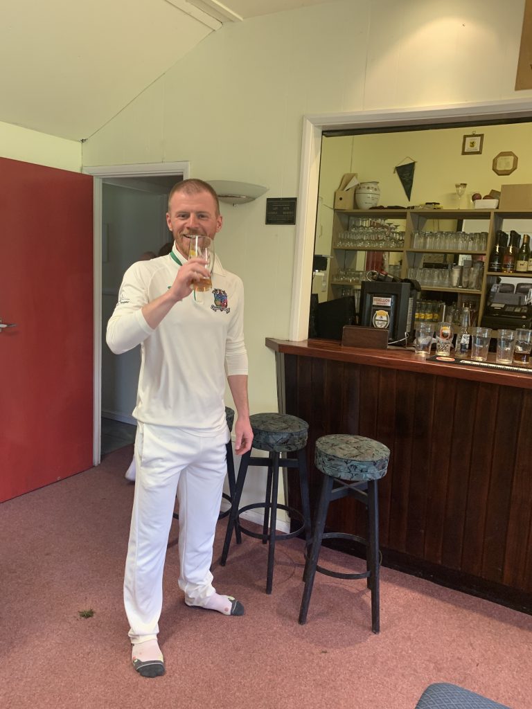 Now, umpiring at this level is a poisoned chalice – either you have absolutely no idea what you’re doing and basically just guess decisions (Zed Jameson); you’re biased to your friends; or you’re afraid of appearing biased to your friends and then just trigger everyone. Ed Gregory was the culprit this time, giddy after his 6 runs, and was crouched down watching whether Frecknall had made his ground after a quick single before an excellent direct hit dislodged the damp bails. He sheepishly gave him out and then later admitted that it was “too close to call really”. This doesn’t make a batsmen feel better when there’s no opportunity to review the DRS footage. Then the batsmen then has even more reason to feel aggrieved when several opposition players say to him afterwards that he was a little hard done by. So, that was that… Frecknall triggered for a well played 44.