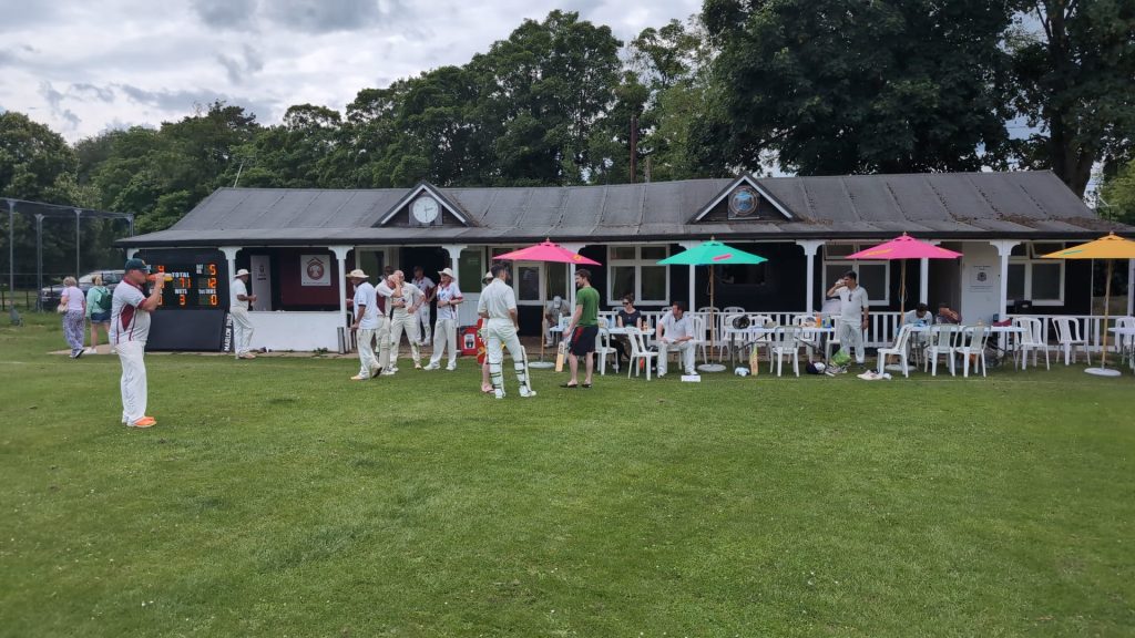 And so to the middle went Messrs Ferreira and (Steve) Smith, the partnership that had so well seen off the opening bowlers to allow Frecknall to knock of the required runs in 2023, after a superb display with the ball by CICC. “A few locals watching the match,” announced ‘Richie Royal,’ as the commentary began. Unfortunately, the Partnership did not last so long this year, with Smith falling early on for 4, then Riaan for 16. Both falling to sharp catches by the keeper, standing up to the medium pacers. Some excellent keeping on display. Gregory was next to fall for 19, and so started the partnership of Leon Crowley and Sam Dooley. ‘Richie Rpyal’ astutely noting that “we might need to pick up the scoring rate here,” before breaking for the shipping forecast.