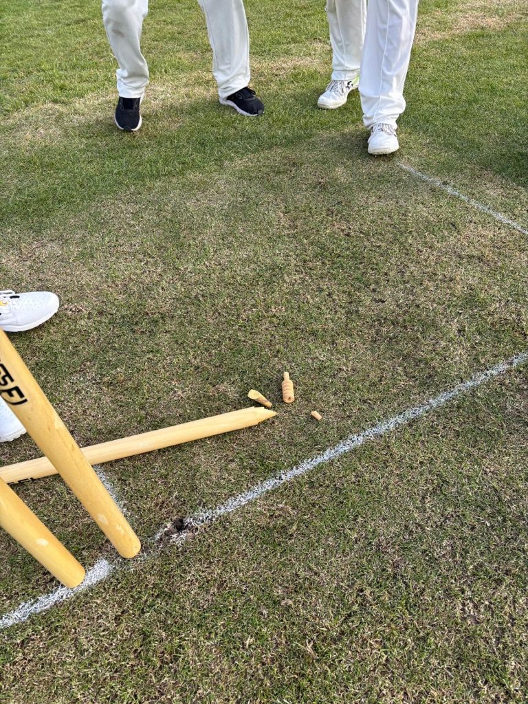 Two swings of Naitik’s brand-new gauge-filler resulted in twelve off the first two balls! This was followed by some worried murmurs from the opposition fielders that perhaps 144 was not enough…Sadly, the fun was short-lived, as Naitik fell on ball number three, bringing an abrupt end to one of the more entertaining innings we’re likely to see this season.
